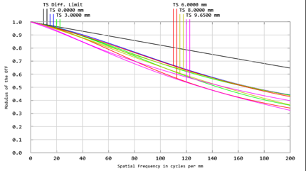 | MTF According to Design in the Center at 140 LP/mm / 200 LP/mm (conditions: F2.4, polychromatic, 0.45 m working distance) | 0.55 / 0.40 |