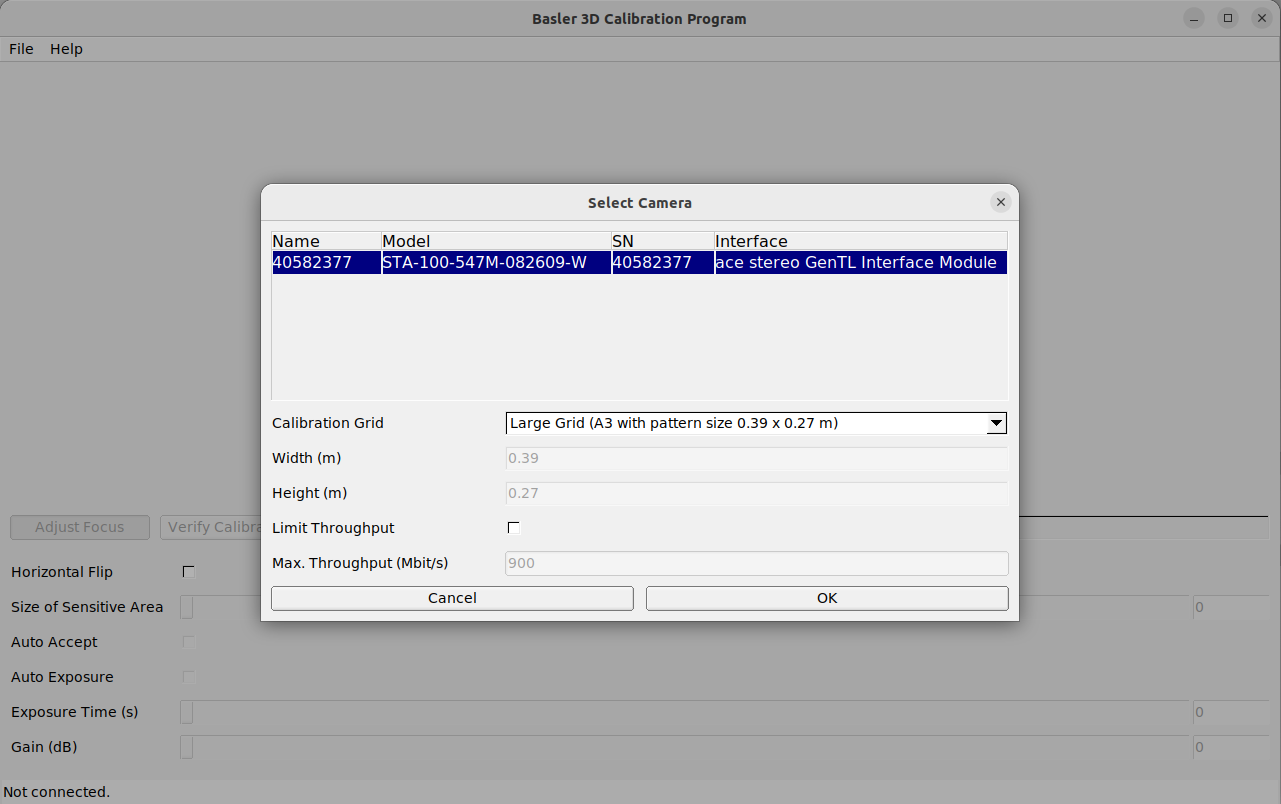 - In the File menu of the Stereo Calibration Tool, click Connect Camera.