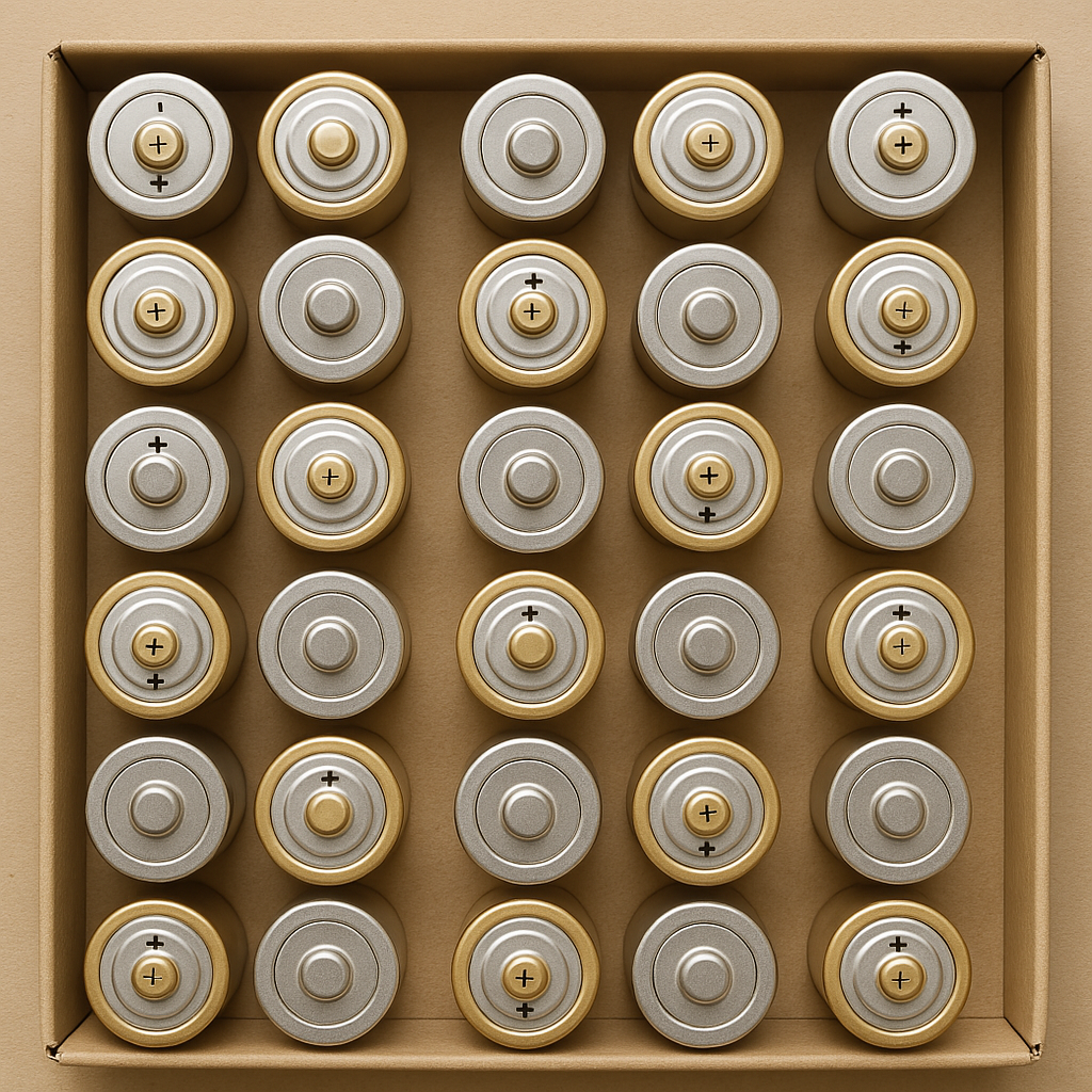 This use case requires a few more steps. The sample image shows 30 AA batteries placed in a box. Some are pointing the wrong way round, i.e., bottom up. The spacing between them is irregular, and they don't fill the entire image.