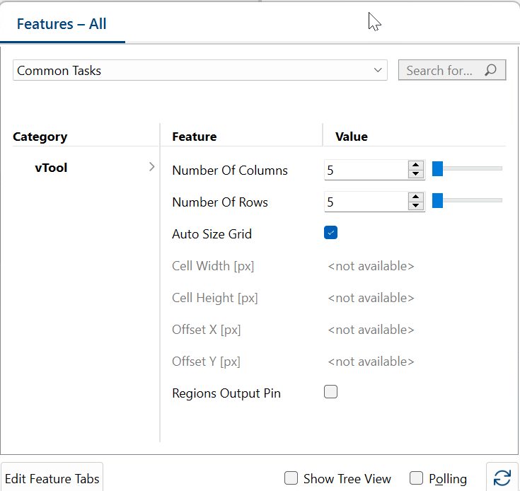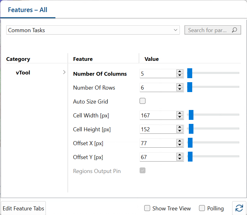 This allows the vTool to divide the image into cells based on the number of columns and rows you have specified. If you need a smaller grid, continue with the next step. - Disable the Auto Size Grid parameter.
