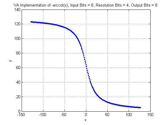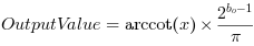 The input range of arccot is [∞, ∞]. This operator includes a parameter Resolution to define the fixed point resolution bits of the input values. The input range is given by the number of input bits =