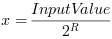 is the bit width at the input and R the resolution bits.