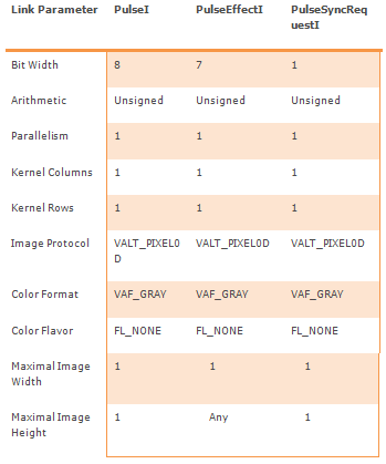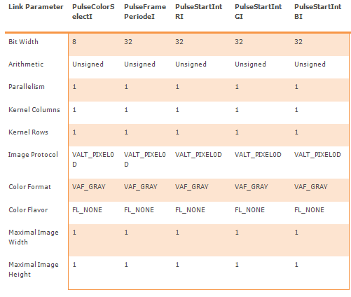 A pulse message is sent at each write to port PulseI. Thus, the parameters of the pulse message need to be valid when a pixel (0D) with the type of the pulse message is written to PulseI.