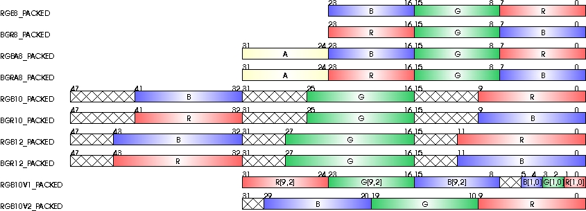 | Range | {RGB8_PACKED, BGR8_PACKED, RGBA8_PACKED, BGRA8_PACKED, RGB10_PACKED, BGR10_PACKED, RGB12_PACKED, BGR12_PACKED, RGB10V1_PACKED, RGB10V2_PACKED} |