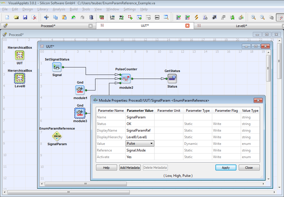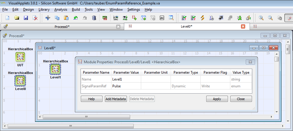 To use the EnumParamReference operator, you need either an Expert license, a Parameter Module license, or the VisualApplets 4 license. |