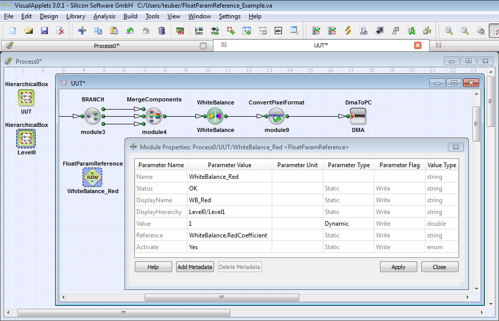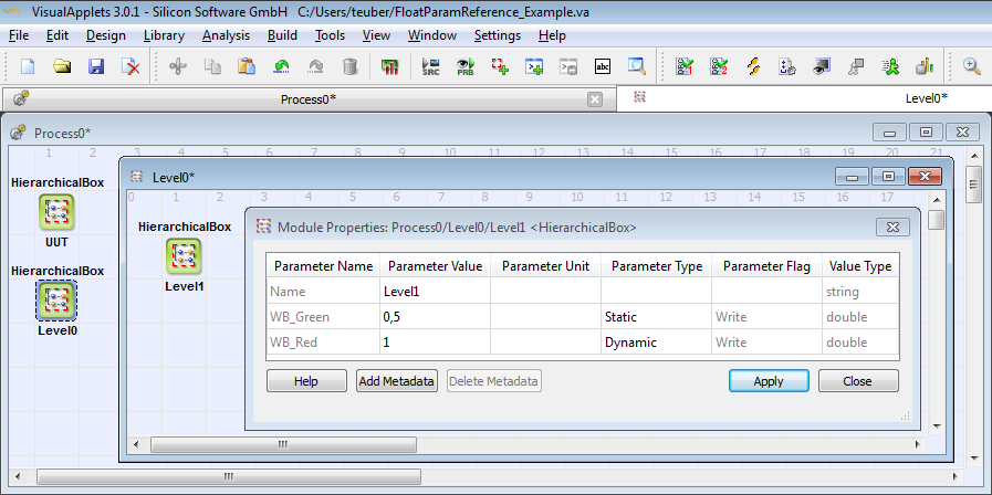 To use the FloatParamReference operator, you need either an Expert license, a Parameter Module license, or the VisualApplets 4 license. |