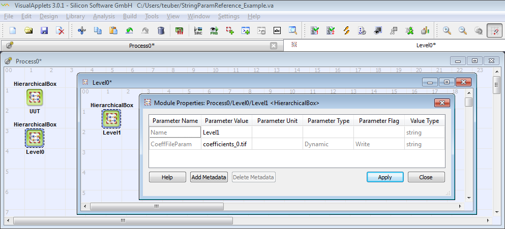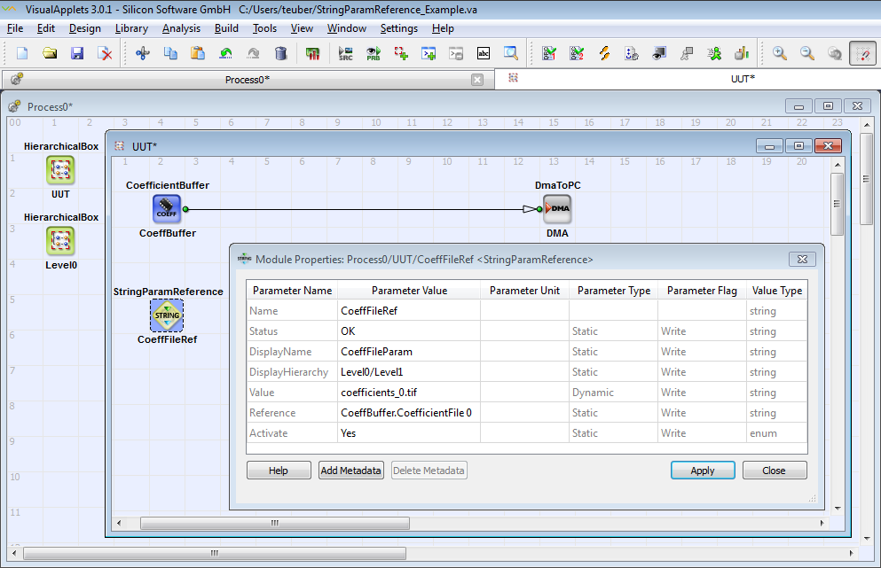 To use the StringParamReference operator, you need either an Expert license, a Parameter Module license, or the VisualApplets 4 license. |