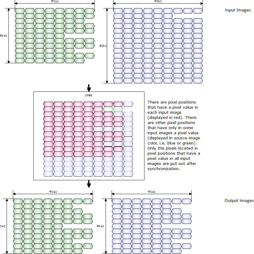 In case of input images with different image dimensions, the operator synchronizes the images so that all output images have the same size.