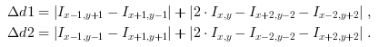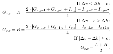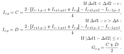 For the interpolation of the green values on red and blue pixels gradients in vertical and horizontal directions (