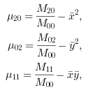 Moments in image processing are average values from the single pixels` intensities of an image. With this moments physical properties like orientation, eccentricity, the area or the centroid of an object in the image can be identified.