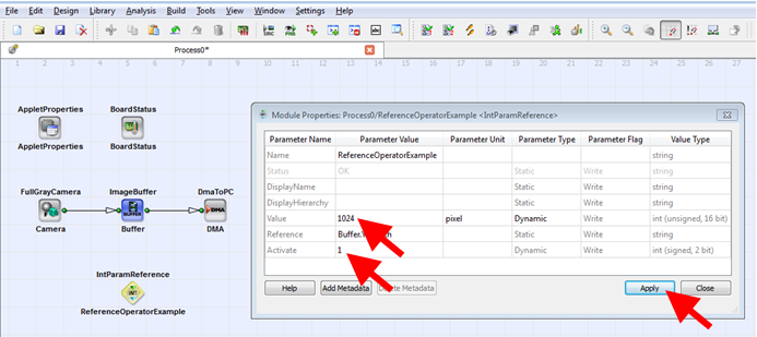 To use the Parameters library, you need either an Expert license, a Parameter Module license, or the VisualApplets 4 license. |