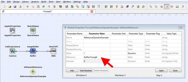 In our example, the value of parameter YLength in operator Buffer is now also available in parameter Value of the reference operator instance: