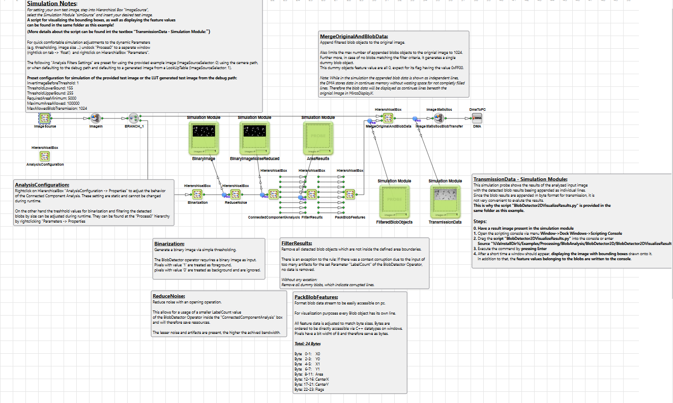 Short Description Shows the usage of the BlobDetector2D operator in area scan applications. An SDK that shows how to use this example in hardware is also delivered in the same directory as this example. Additionally, this example is delivered with a Python script that